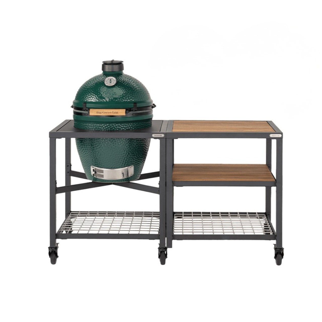 Komplektis on keraamiline söegrill Big Green Egg Large, moodulsüsteemi raam ja laiendusraam akatsiapuidust ja roostevabast terasest riiulitega ning rattakomplekt. Loo mugav ja laiendatav väliköök, kus on piisavalt tööpinda ja hoiuruumi suure seltskonna toitlustamiseks.