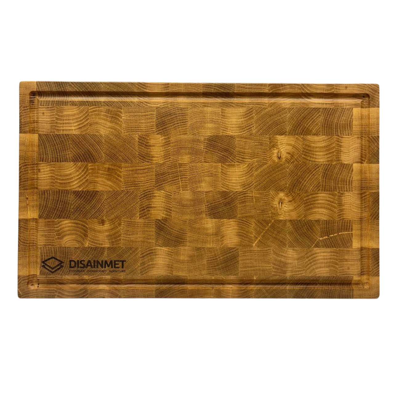 Materjalid: ristikiudu liimitud tammepuit (“endgrain”) – kordades tugevam pind, hoiab noa